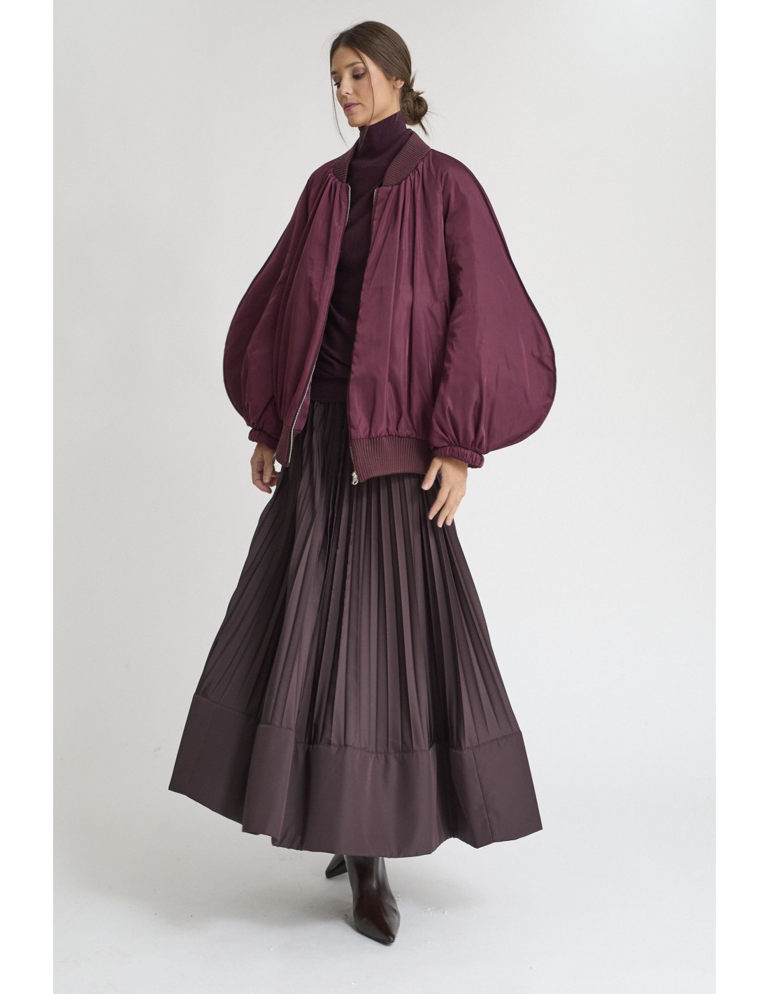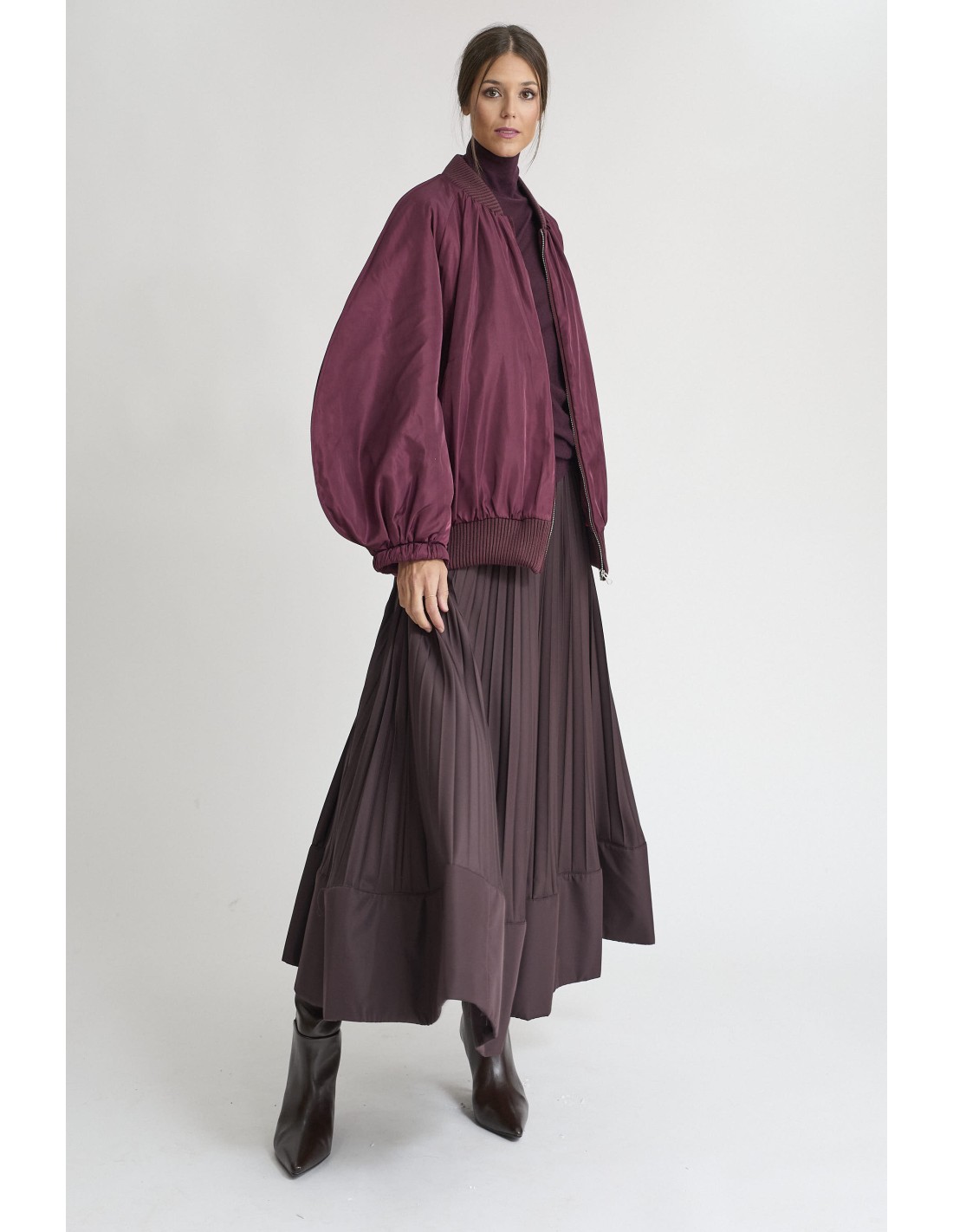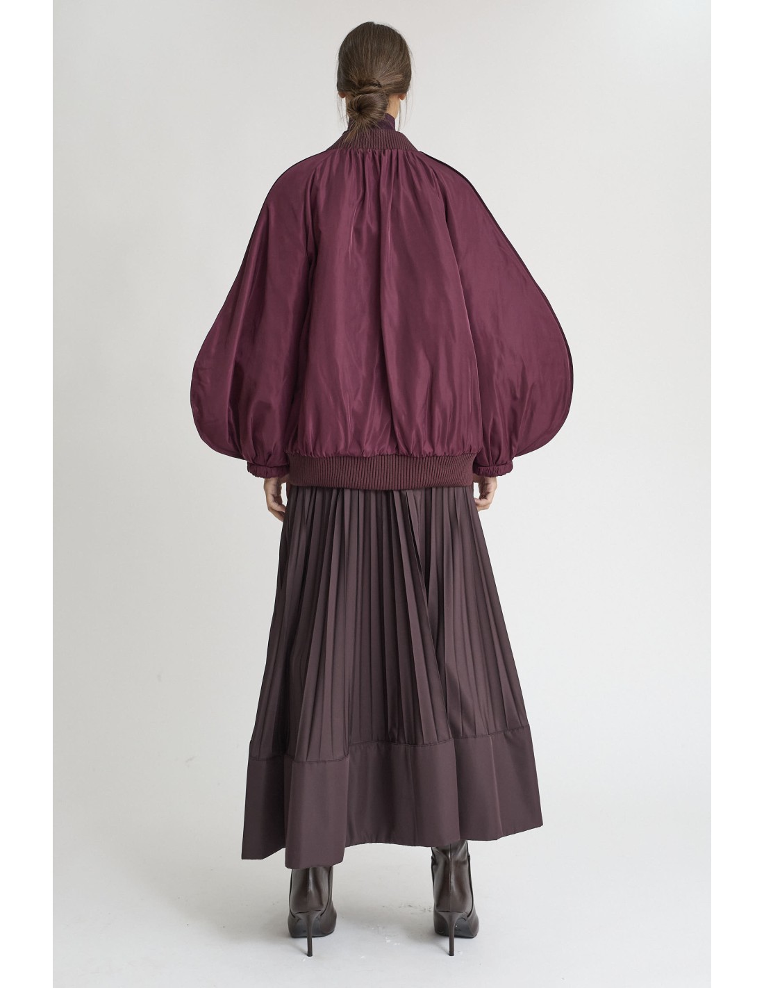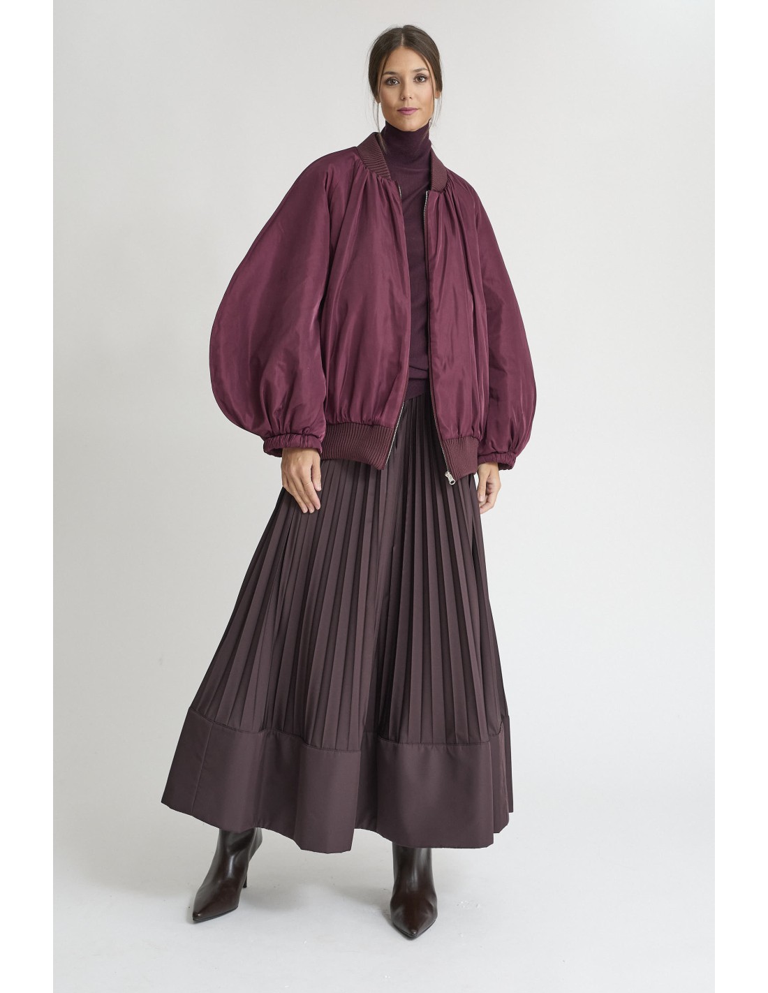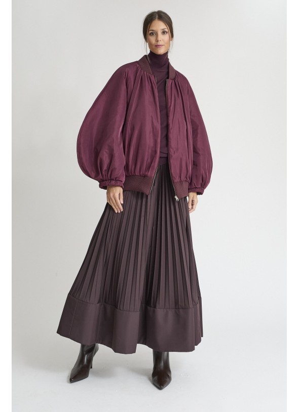 Bomber mangas abullonadas en burdeos, cierre cremallera
