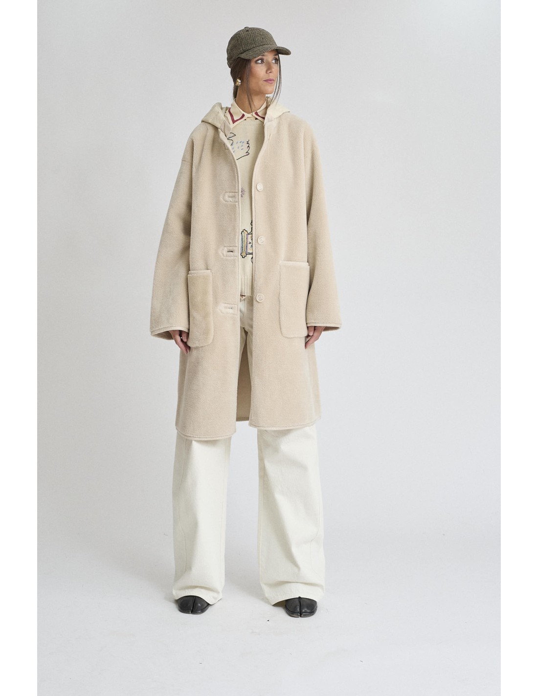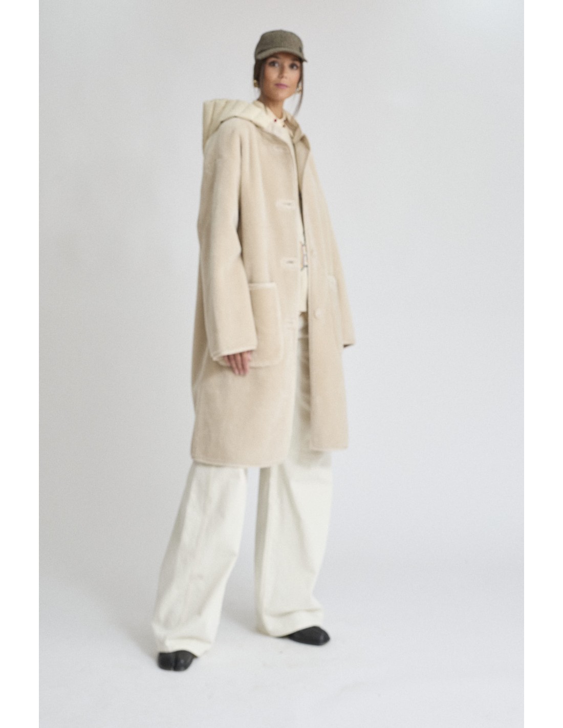 Abrigo con capucha impermeable desmontable, bolsillos, cierre botones delantero