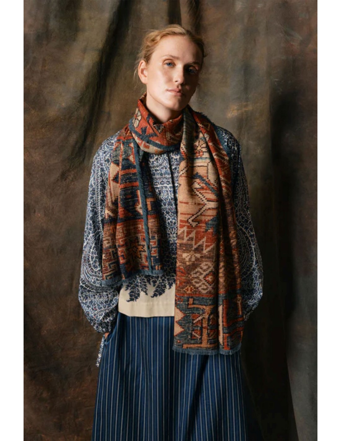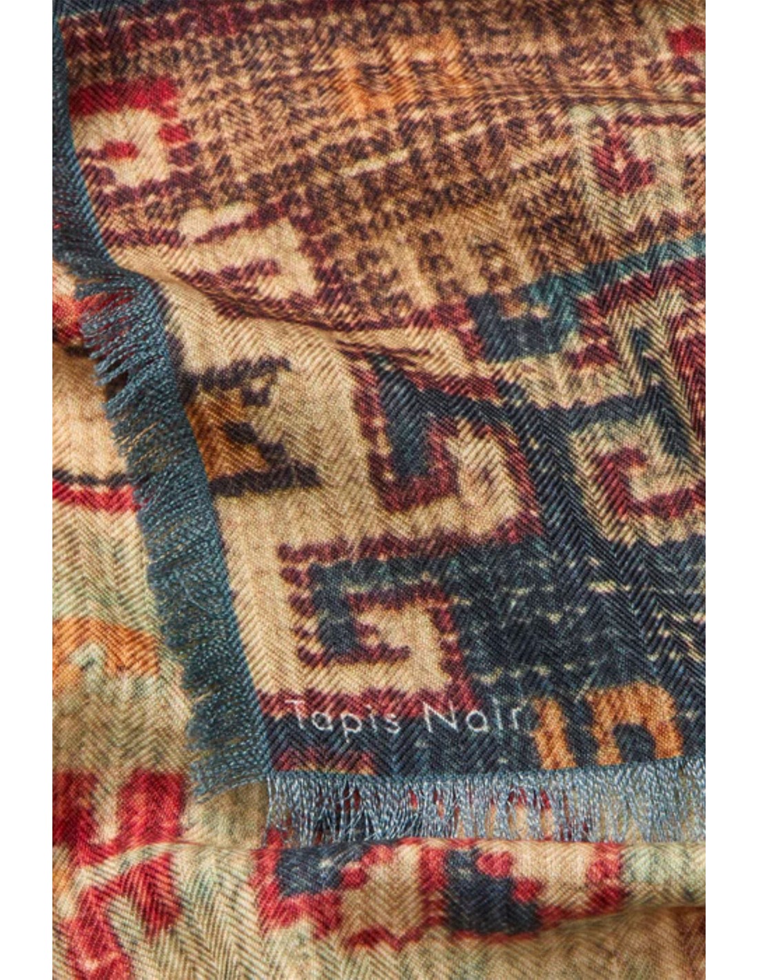 Bufanda gran de confeccionada en una tea de grosor medio de llana y seda con tejido de espiga.