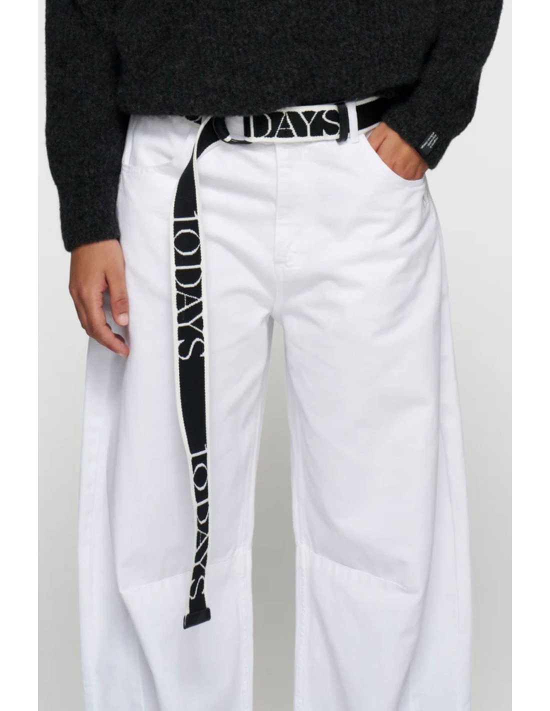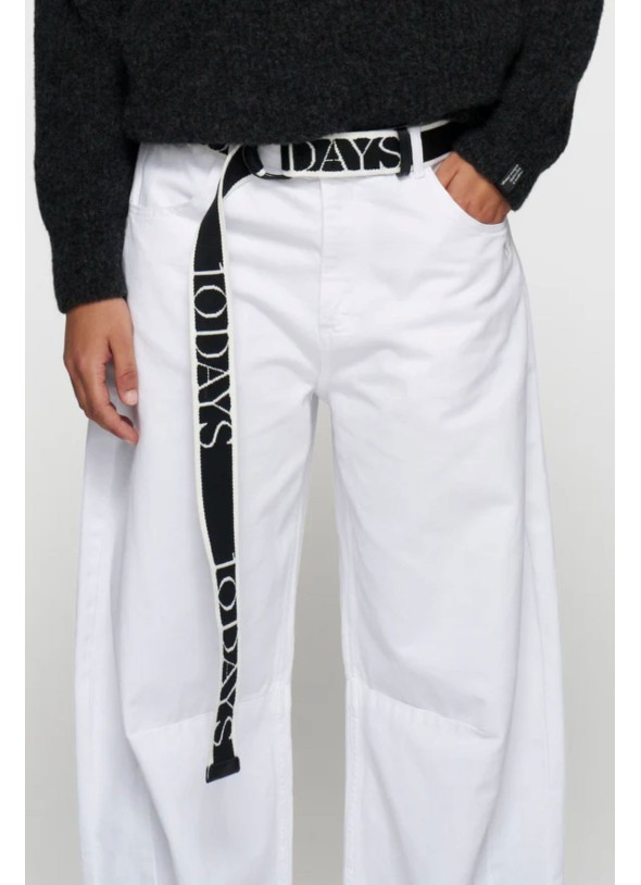 Cinturón de sarga de algodón con cierre de anilla metálica, ajustable a diferentes longitudes y con el logo de la marca