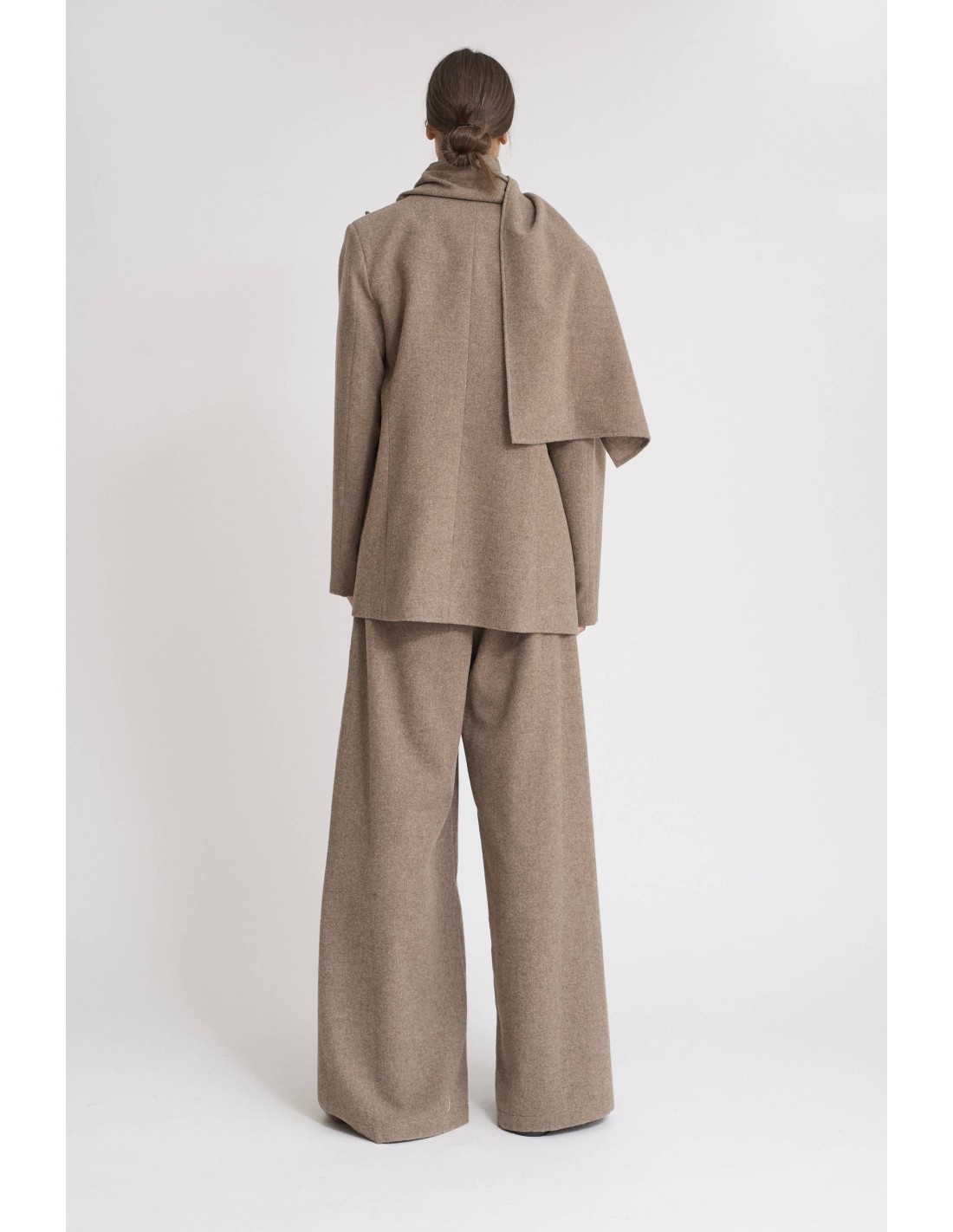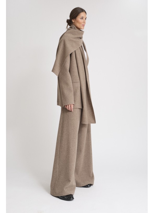 Americana en lana con efecto bufanda incorporada, cierre un botón, bolsillos.