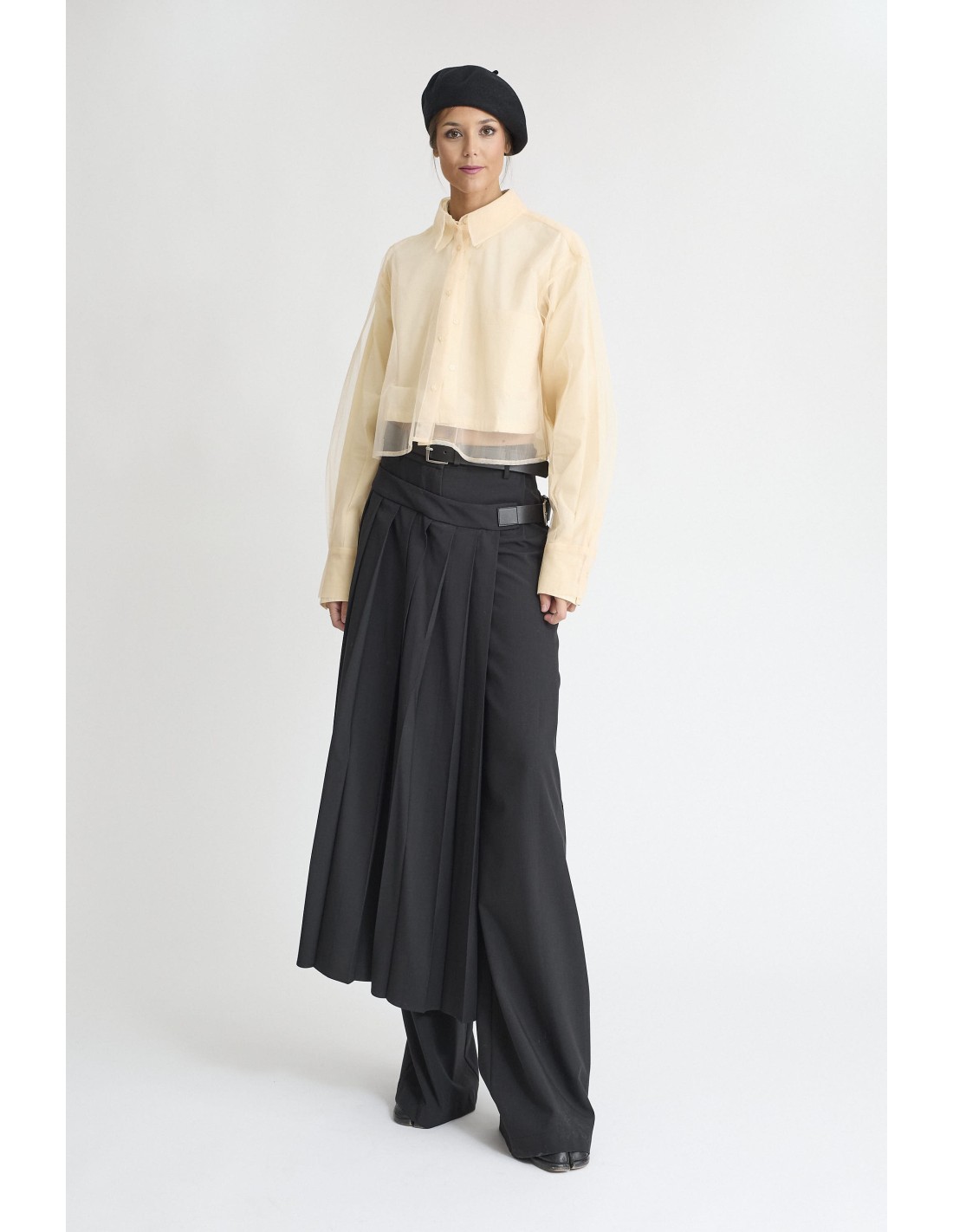 Camisa crema corta con doble camisa de tul por encima que se pueden separar.