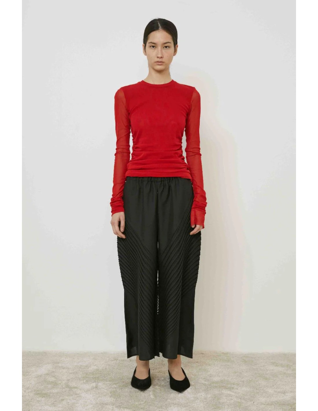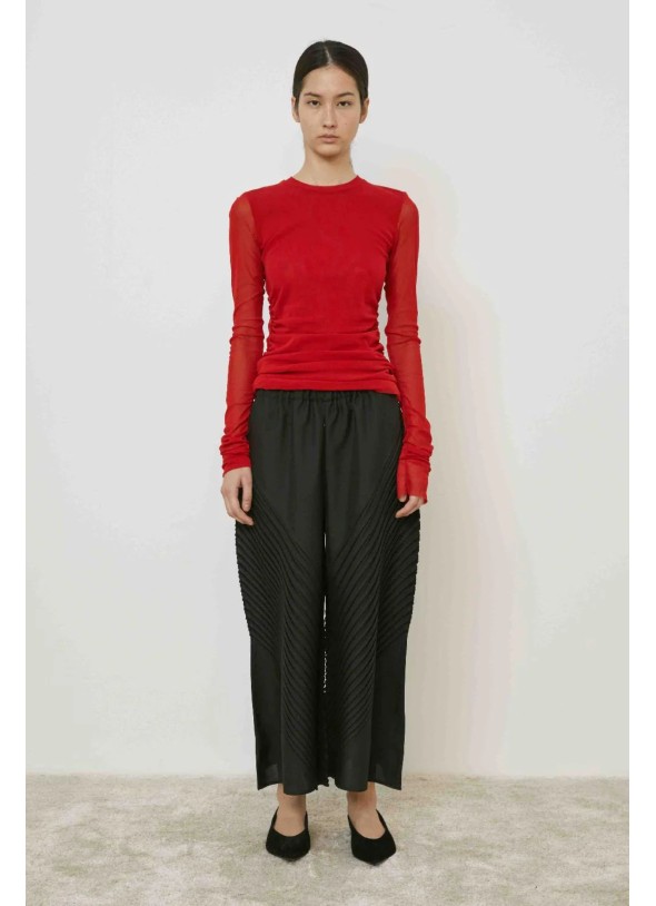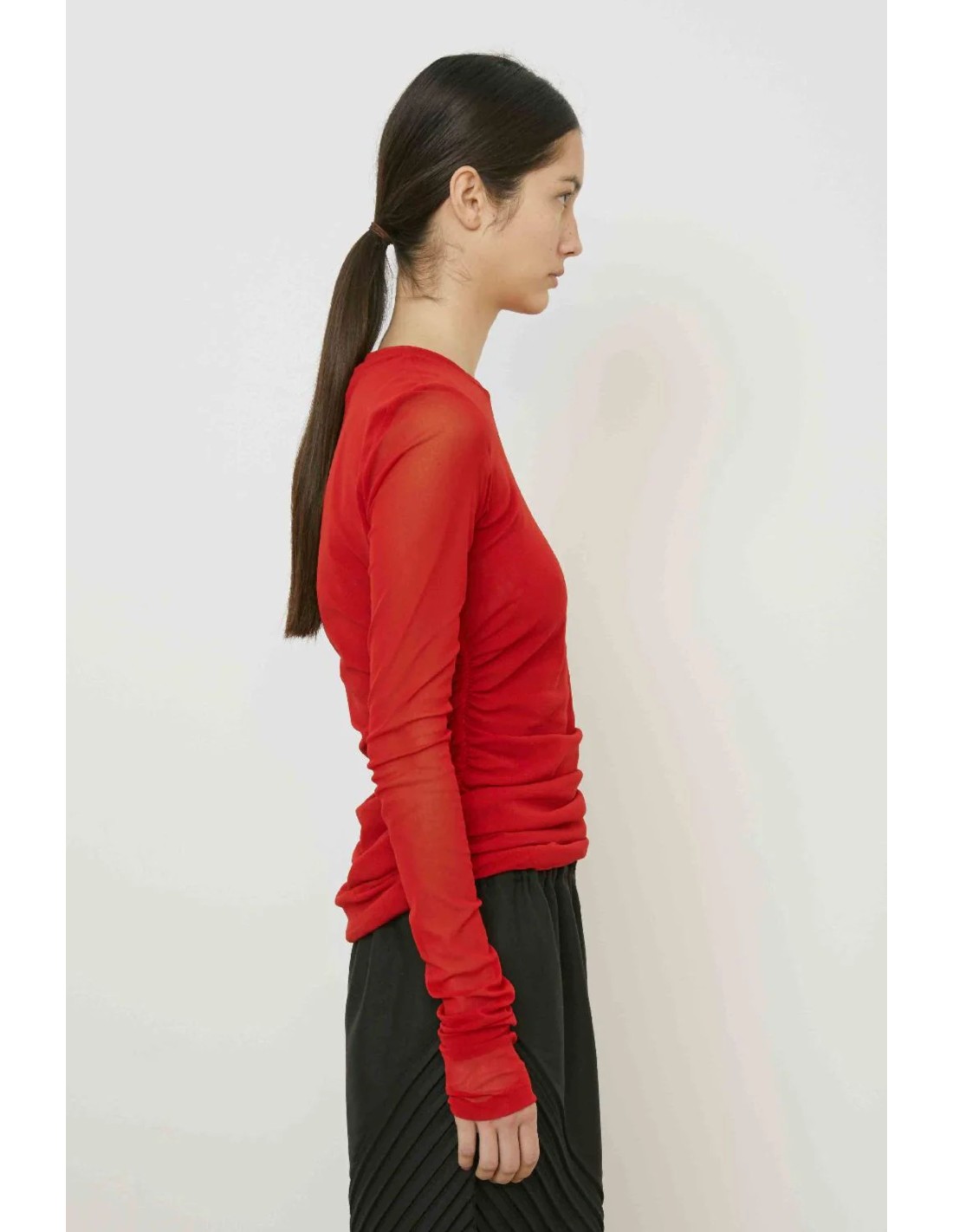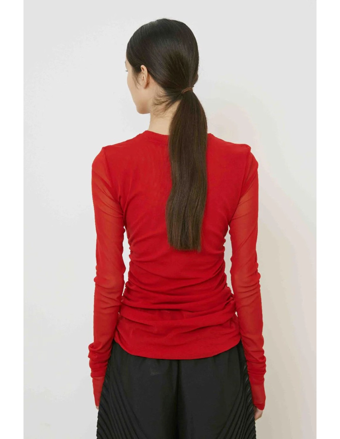 Camiseta de tu ajustada con doble forro, cuello redondo mangas largas y fruncido en laterales