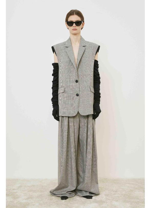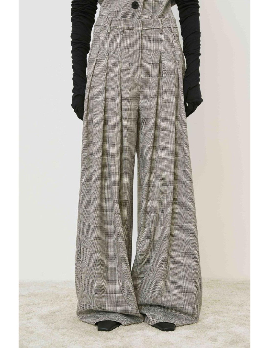 Pantalón ancho príncipe de gales tiro alto con pinzas delanteras, bolsillos y trabillas