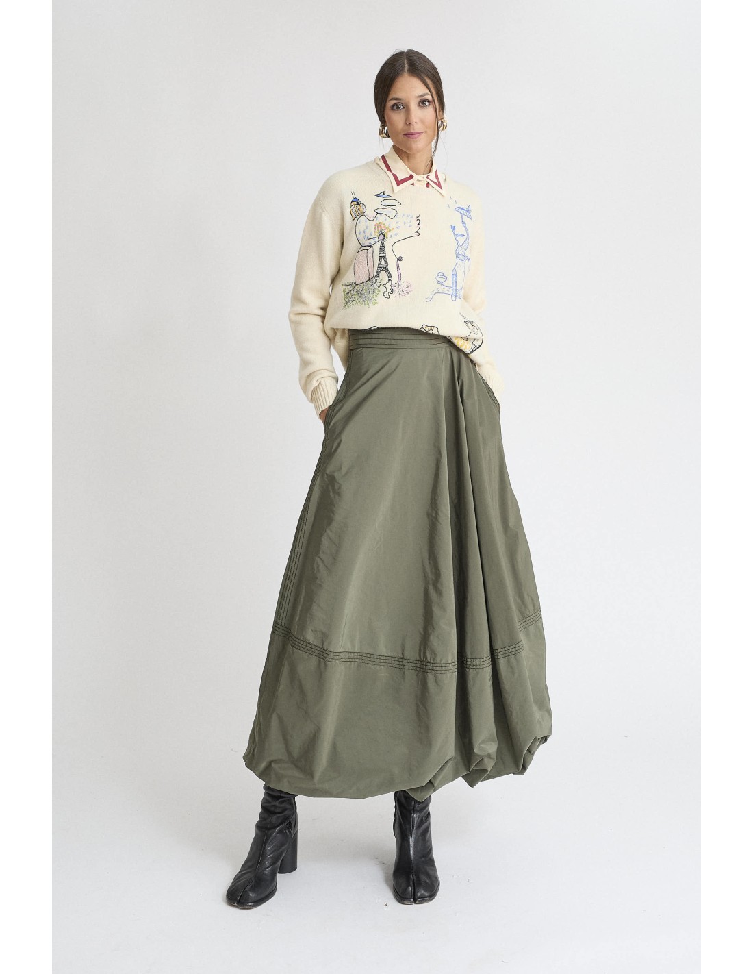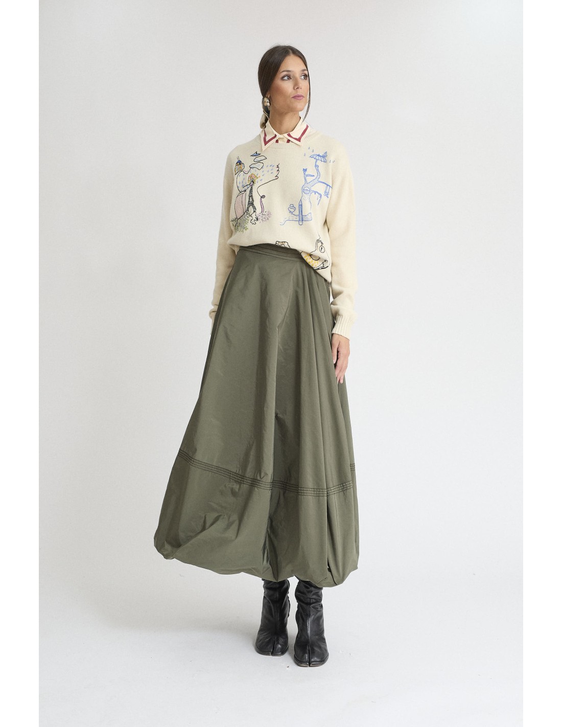 Jersey de lana ligeramente oversize, el bordado es a mano