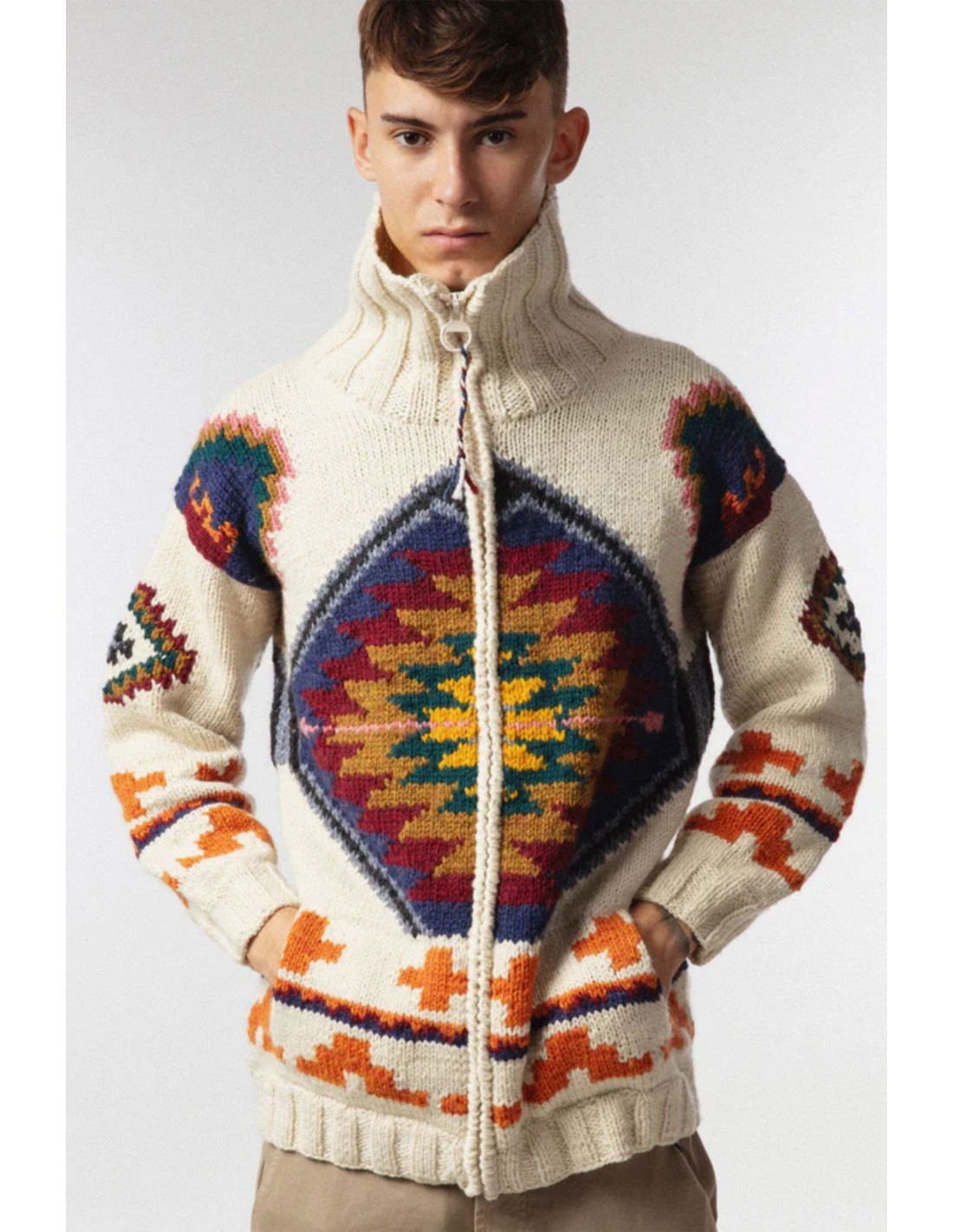 Chaqueta de punto con cierre cremallera de cuello alto, remates en punto inglés en mangas y bajo