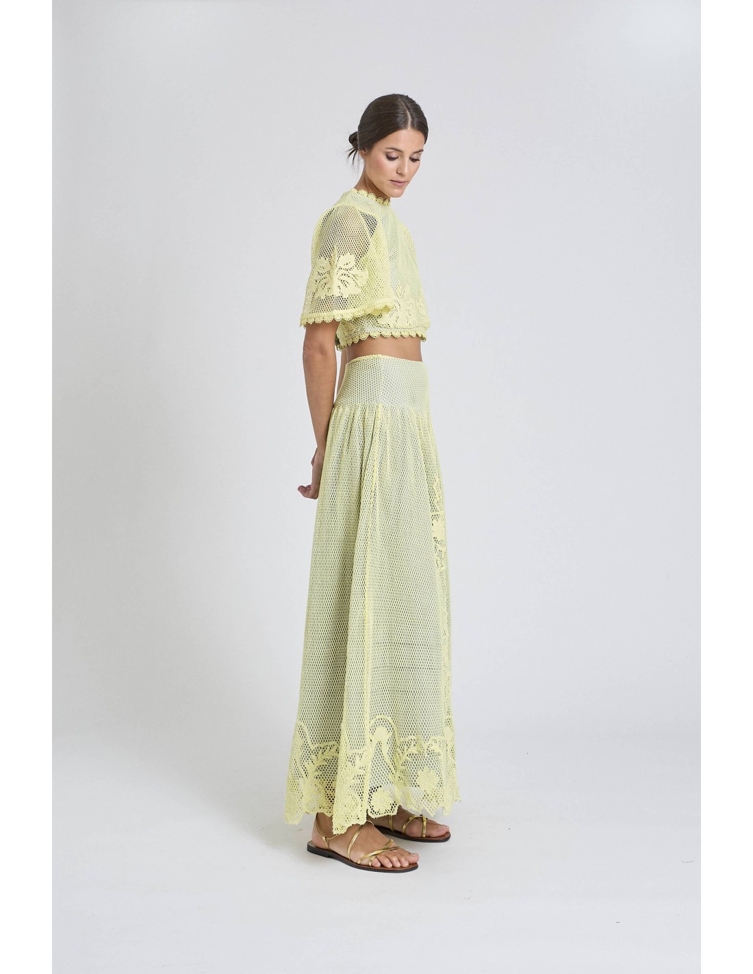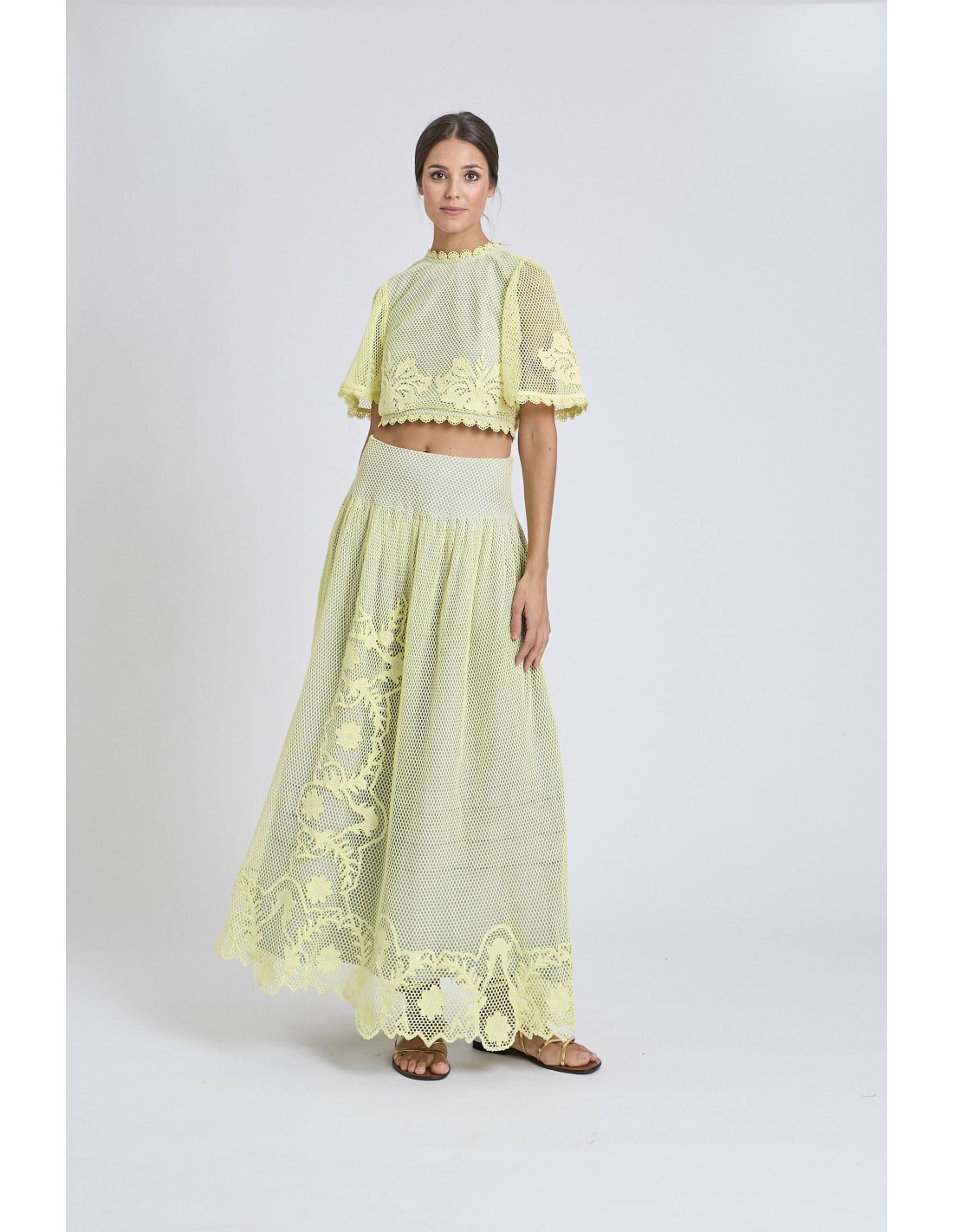 Falda de red color lima forrada en algodón en color gris