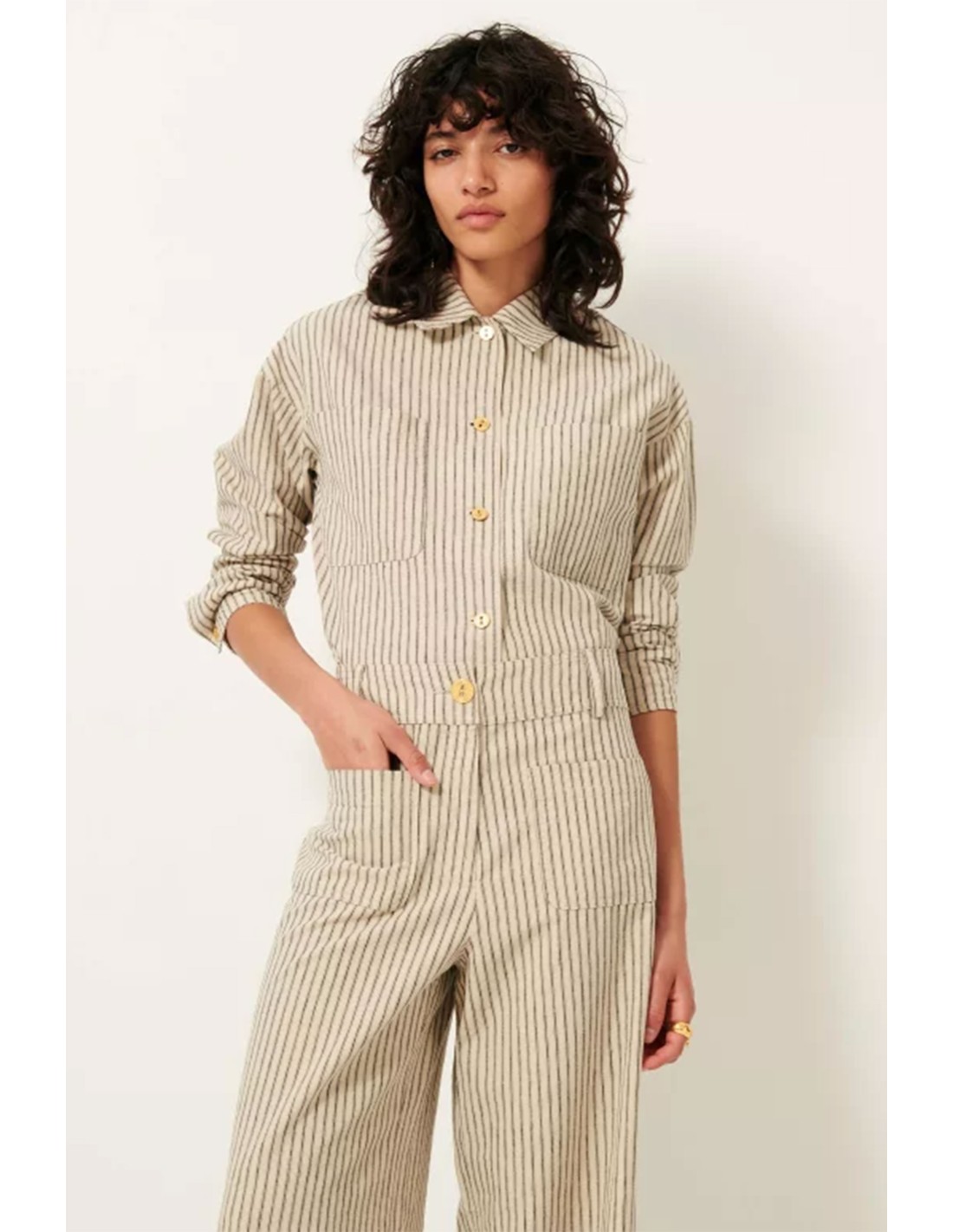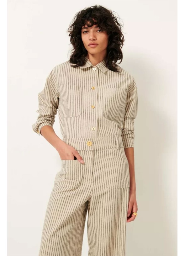 Sobrecamisa a rayas de algodón orgánico con bolsillos de parche