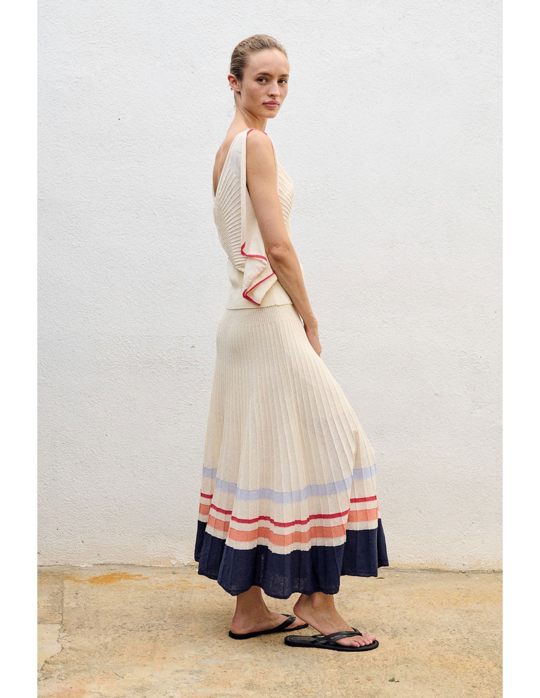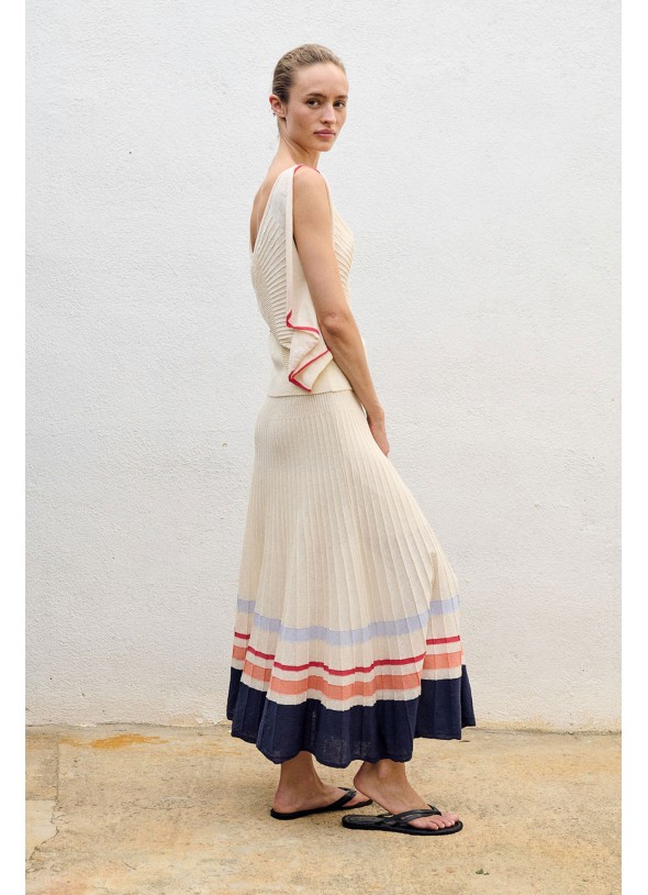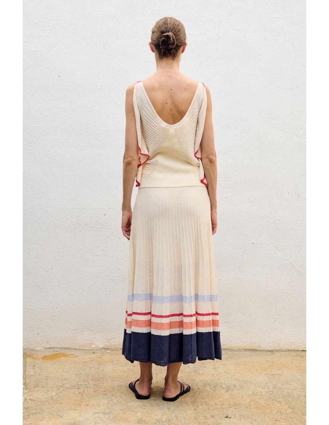 Top de punto con volantes a los laterales y contraste en el dobladillo.
