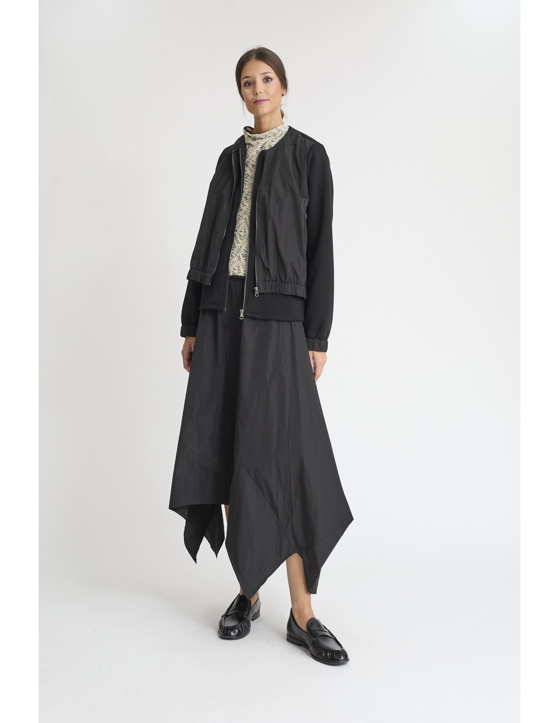 Chaqueta tipo sudadera combinada con delantera tafeta, cierre cremallera