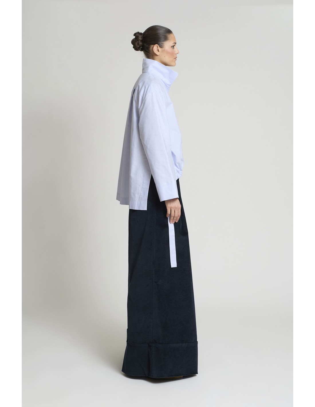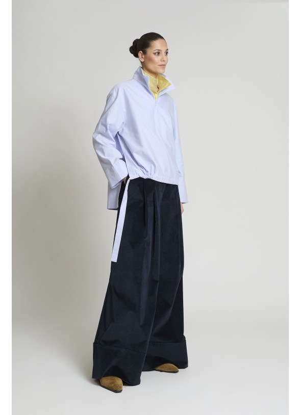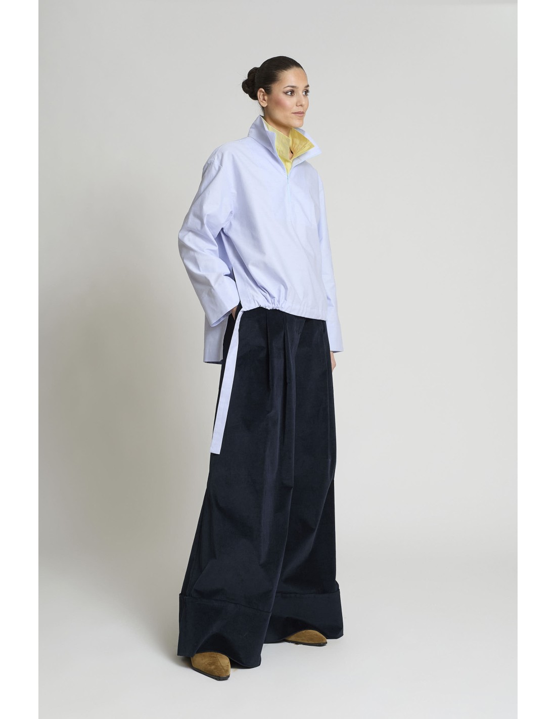 Camisa asimétrica combinada con doble cuello extraíble en color amarillo, ajustable parte delantera.