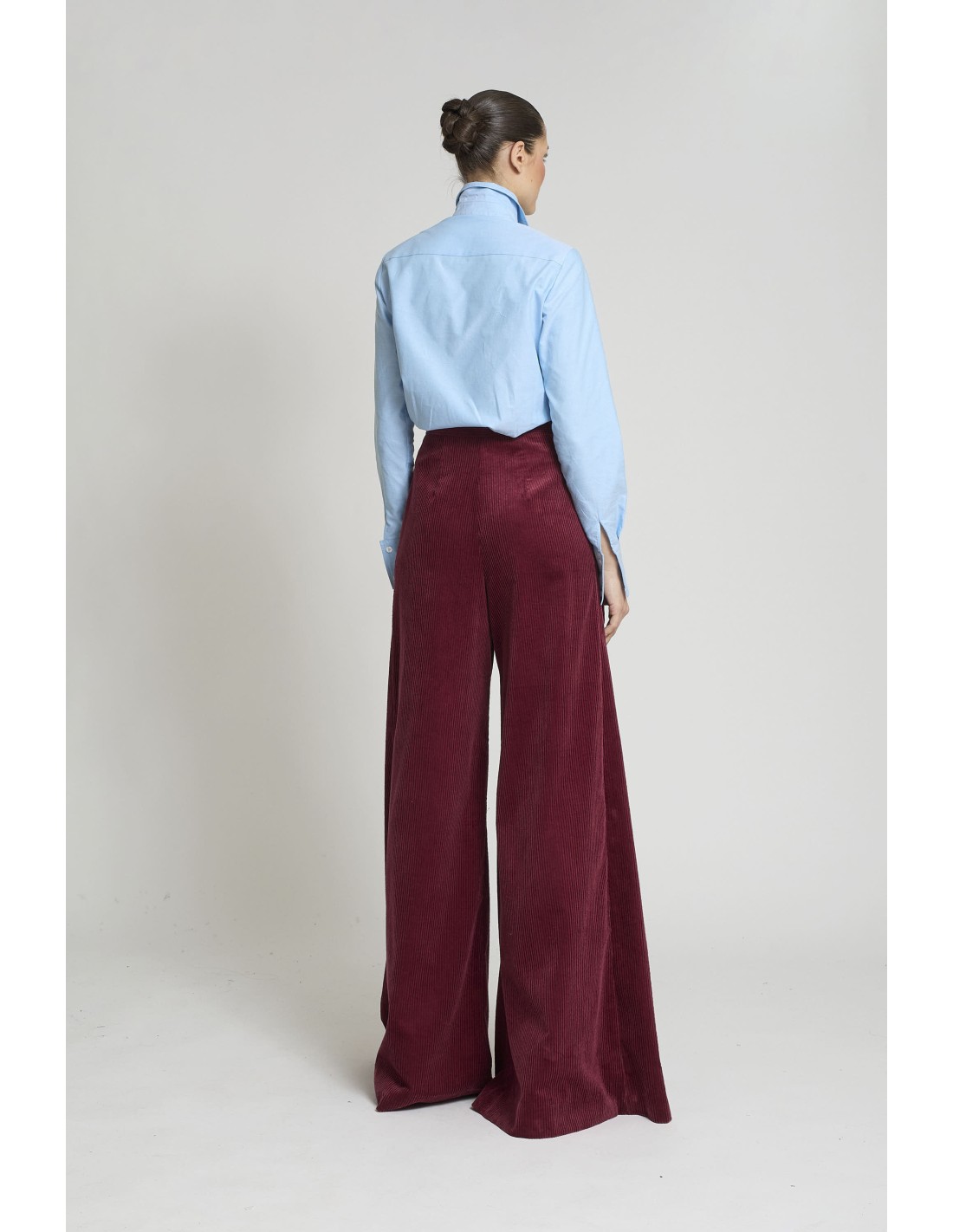 Pantalón palazzo de pana con pinzas delanteras y bolsillos.