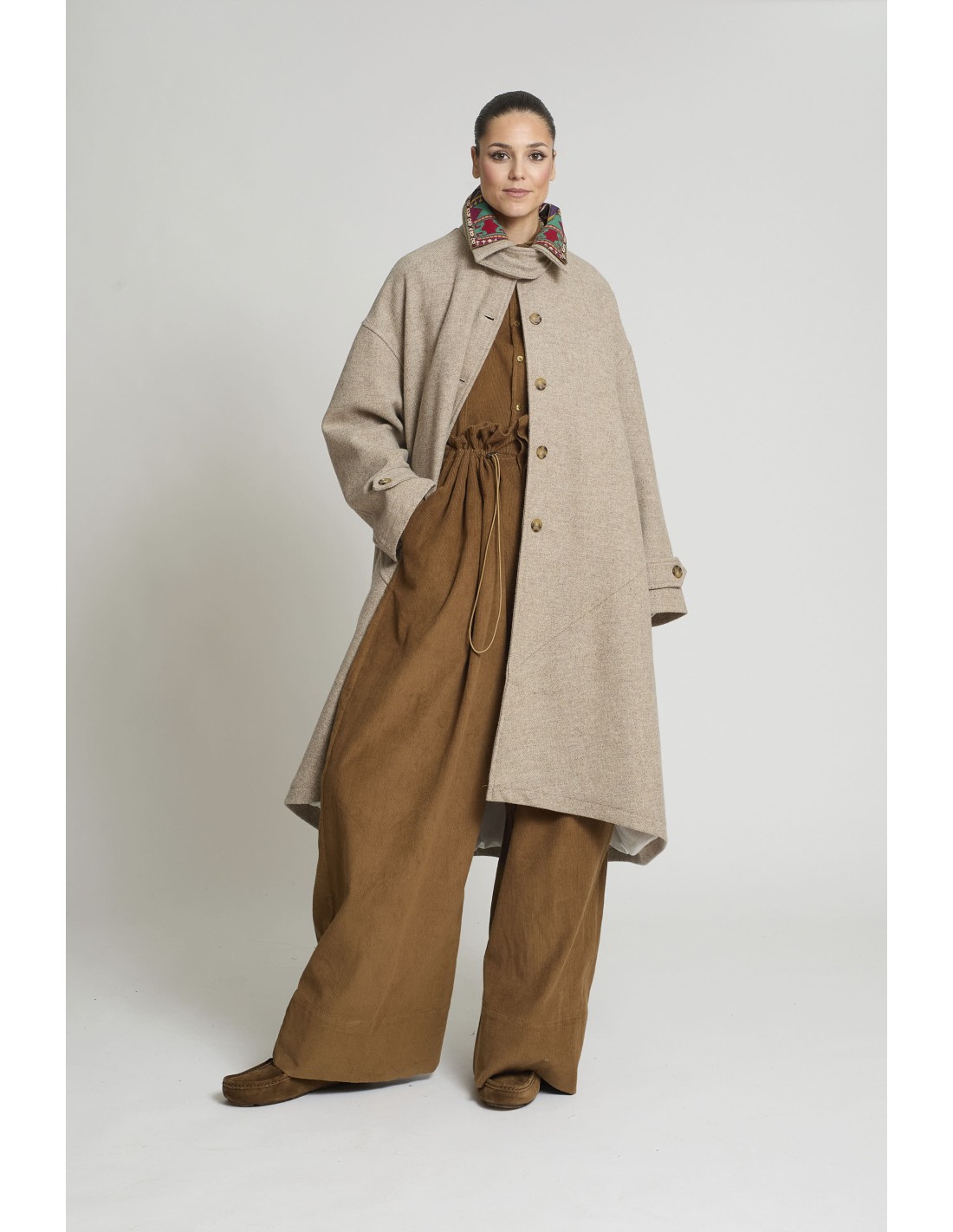 Maxi abrigo de cuadros con bolsillos, no lleva étnico en el cuello