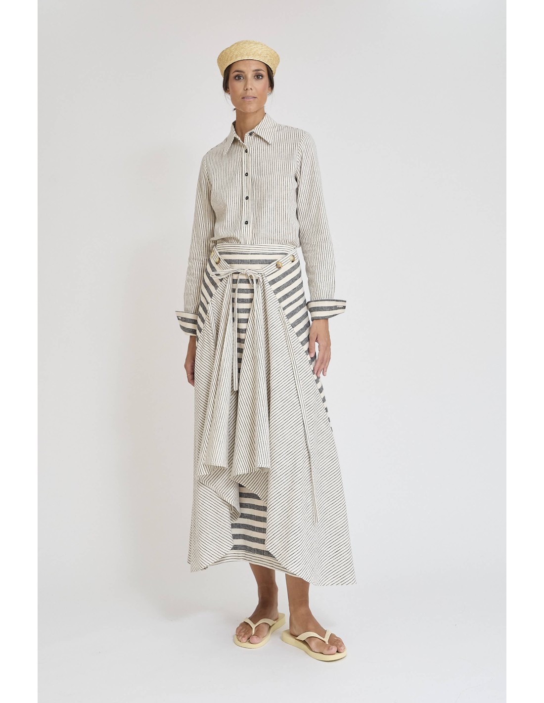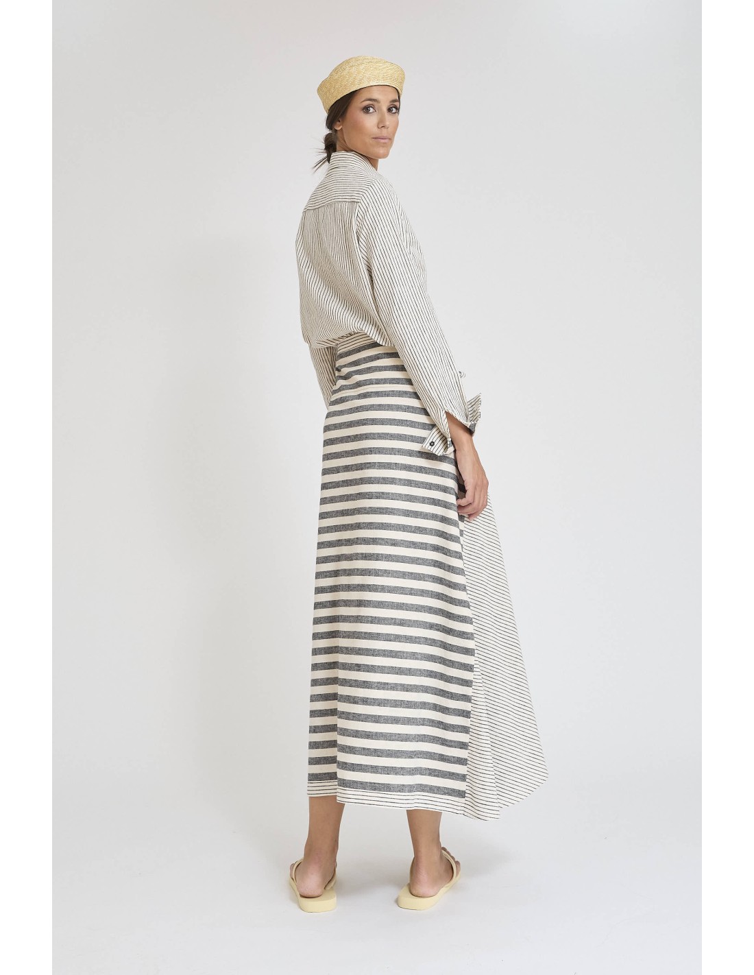 Falda combinada en algodón-lino – Ligera, cómoda y versátil, perfecta para looks frescos y sofisticados.