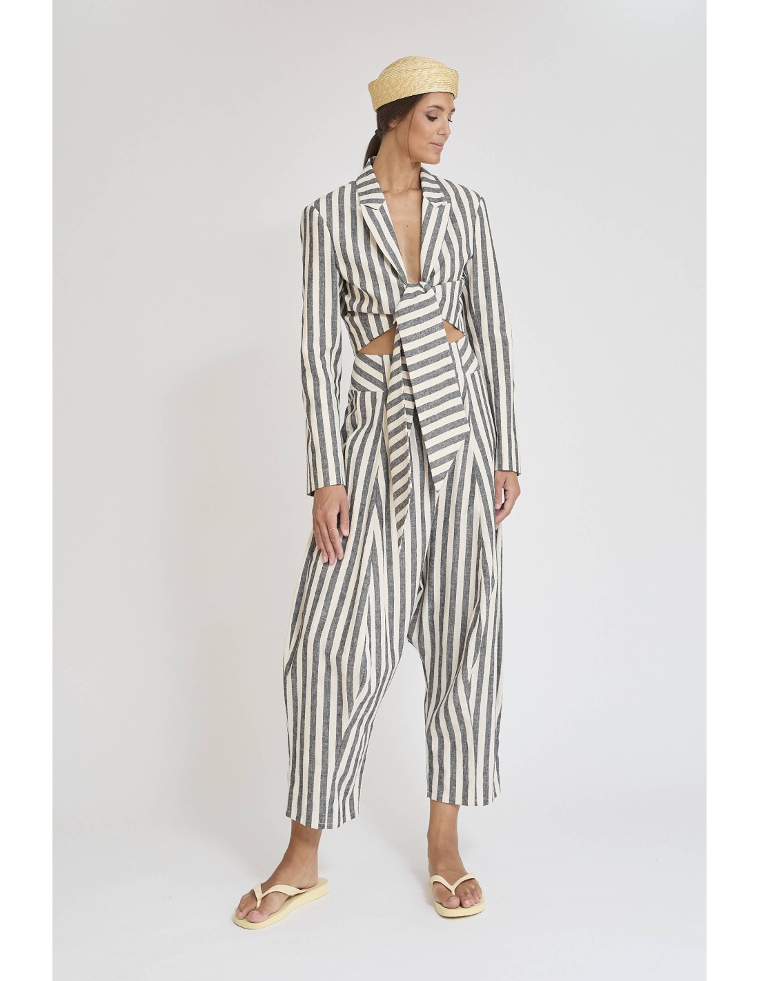 Pantalón baggy en algodón-lino con rayas – Cómodo, fresco y con estilo moderno que aporta personalidad a tu look.