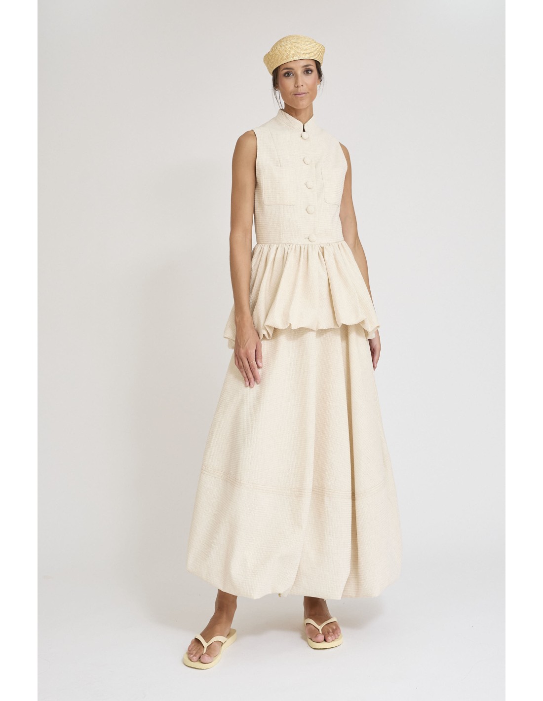 Chaleco en algodón-lino estilo globo – Versátil y sofisticado, perfecto para outfits casuales o más elegantes.