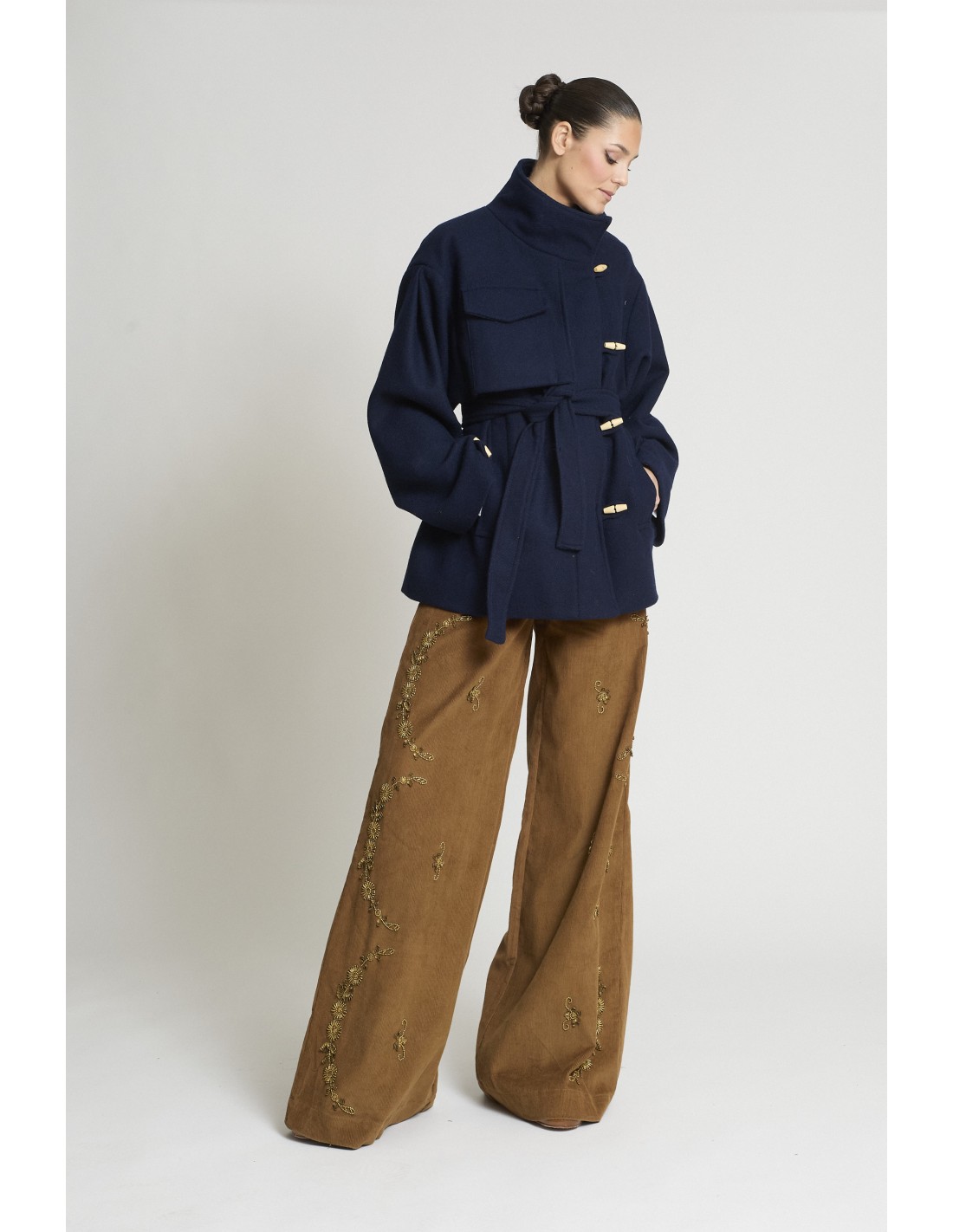 Trenka japonesa en paño, bolsillos laterales, capota trasera