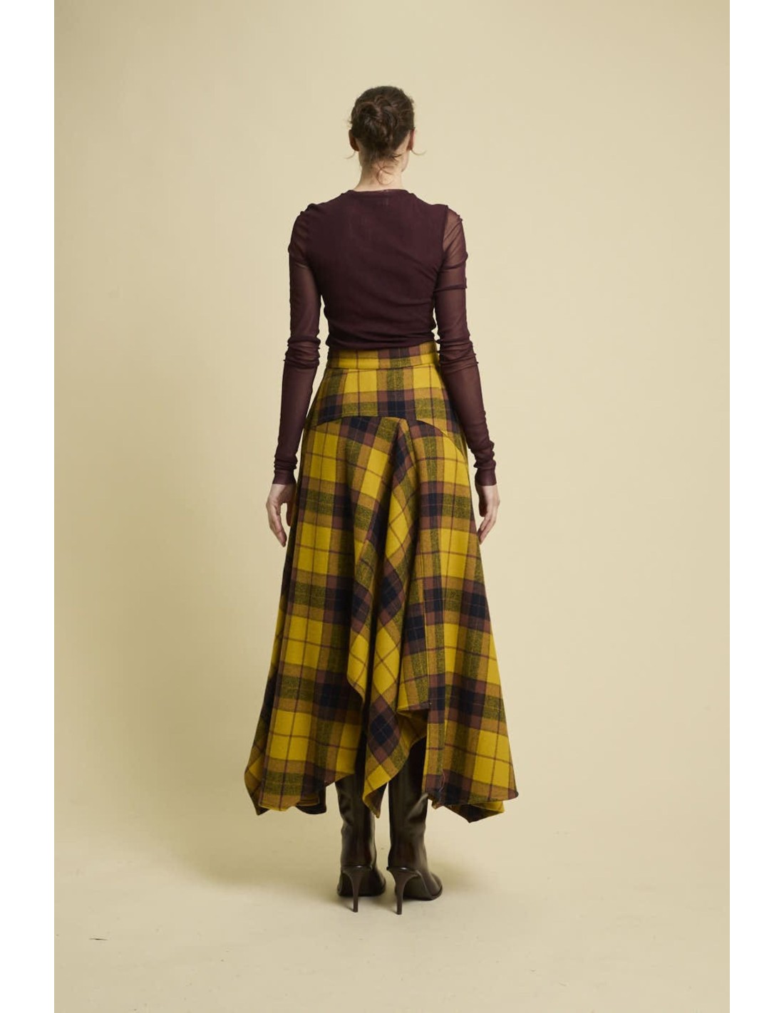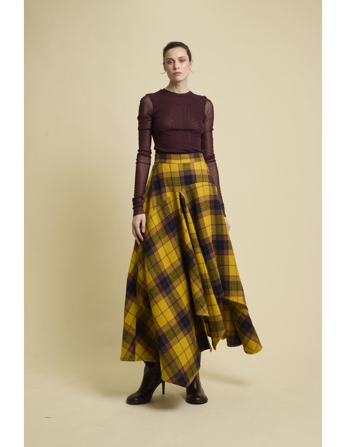 Falda asimétrica cuadros. Cierre cremallera lateral